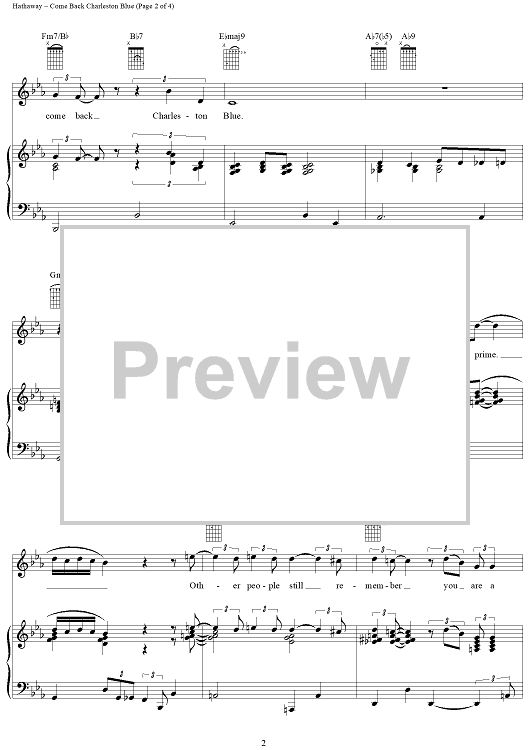 "Come Back Charleston Blue" Sheet Music by Donny Hathaway