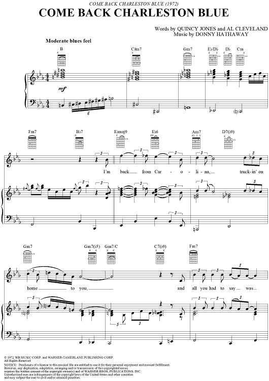 Digital Sheet Music for Come Back Charleston Blue by Donny Hathaway, Al Cleveland, Quincy Jones scored for Piano/Vocal/Chords; id:236586