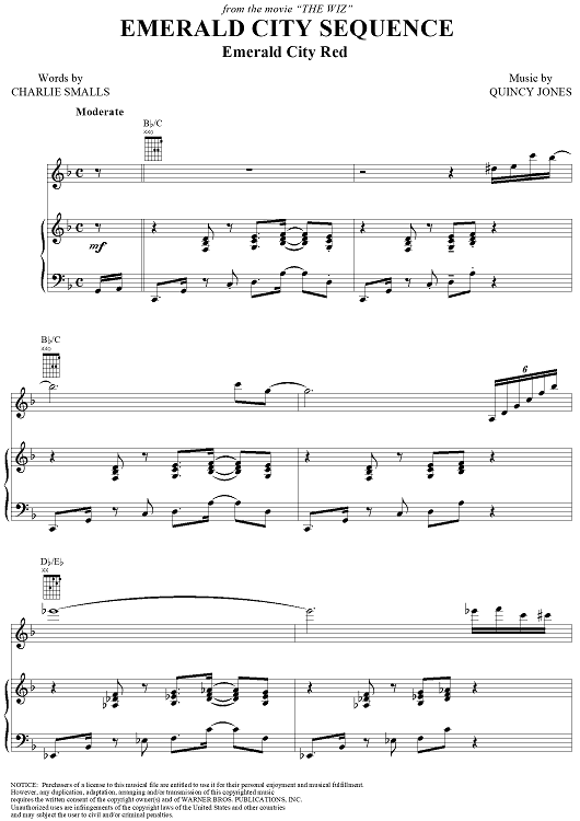 Digital Sheet Music for Emerald City Sequence: Emerald City Red by Charlie Smalls, Quincy Jones scored for Piano/Vocal/Chords; id:265513