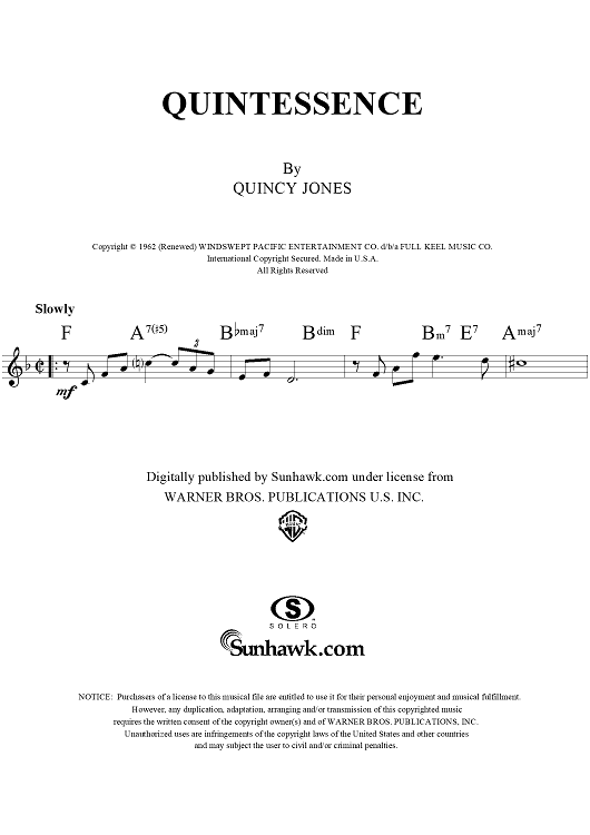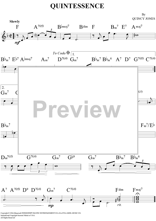 Digital Sheet Music for Quintessence by Quincy Jones scored for Lead Sheet; id:265466