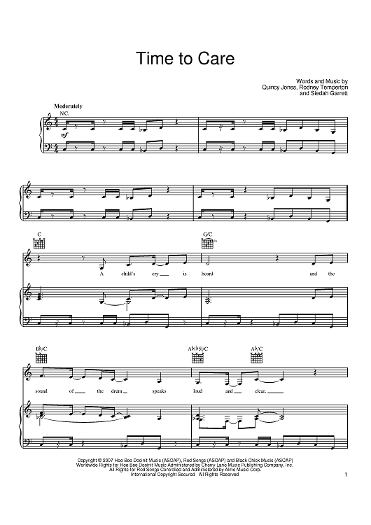 Digital Sheet Music for Time To Care by Siedah Garrett, Quincy Jones, Rodney Temperton scored for Piano/Vocal/Chords; id:401602