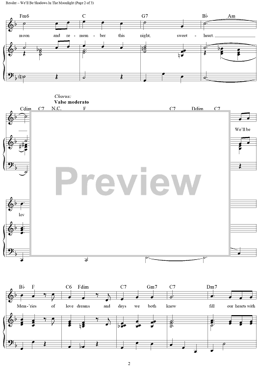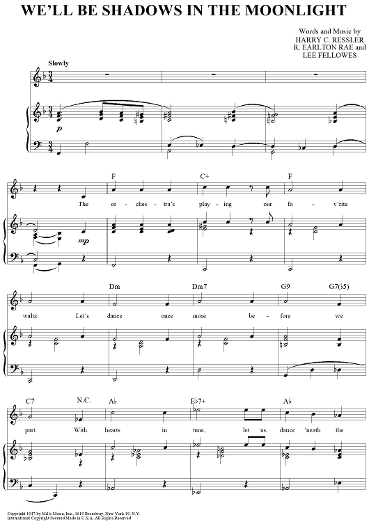 Digital Sheet Music for Well Be Shadows In The Moonlight by Harry C. Ressler, R. Earlton Rae, Lee Fellowes scored for Piano/Vocal/Chords; id:419684