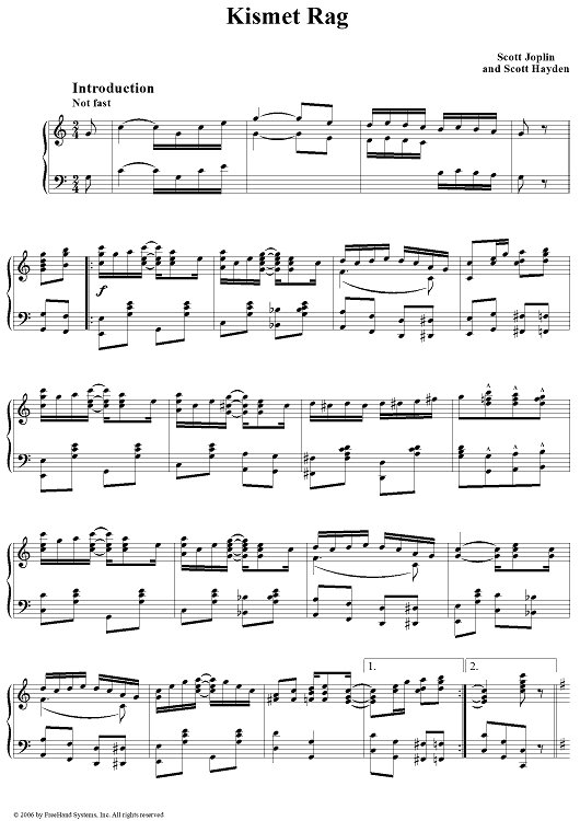 Digital Sheet Music for Kismet Rag by Scott Joplin, Scott Hayden scored for Piano Solo; id:249703