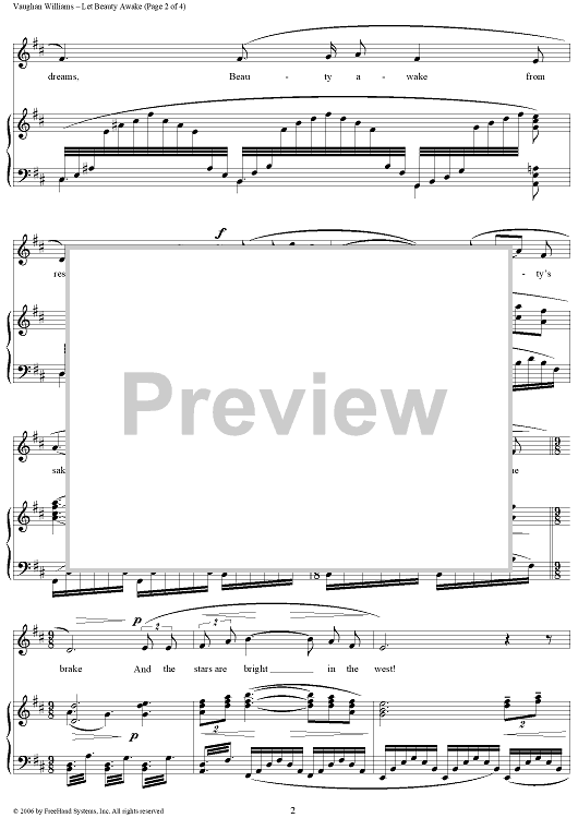 "No. 2: Let Beauty Awake" Sheet Music by Ralph Vaughan Williams