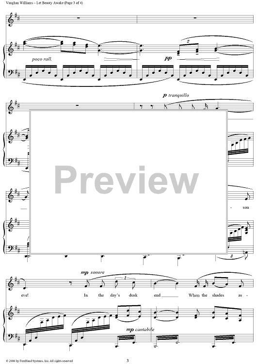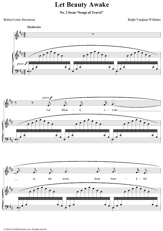 Digital Sheet Music for No. 2: Let Beauty Awake by Robert Louis Stevenson, Ralph Vaughan Williams scored for Voice/Piano; id:262470