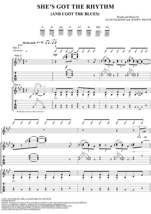 "She's Got the Rhythm (And I Got the Blues)" Sheet Music by Al Jackson Jr