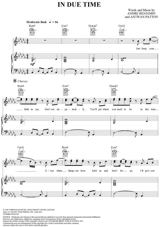 Digital Sheet Music for In Due Time by André 3000, Big Boi, OutKast scored for Piano/Vocal/Chords; id:234052