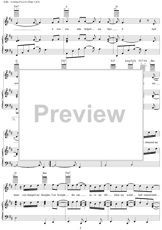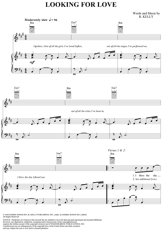 Digital Sheet Music for Looking for Love by R. Kelly scored for Piano/Vocal/Chords; id:143672