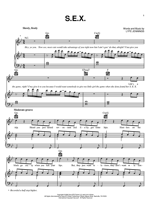 Digital Sheet Music for S.E.X. by Lyfe Jennings scored for Piano/Vocal/Chords; id:392732