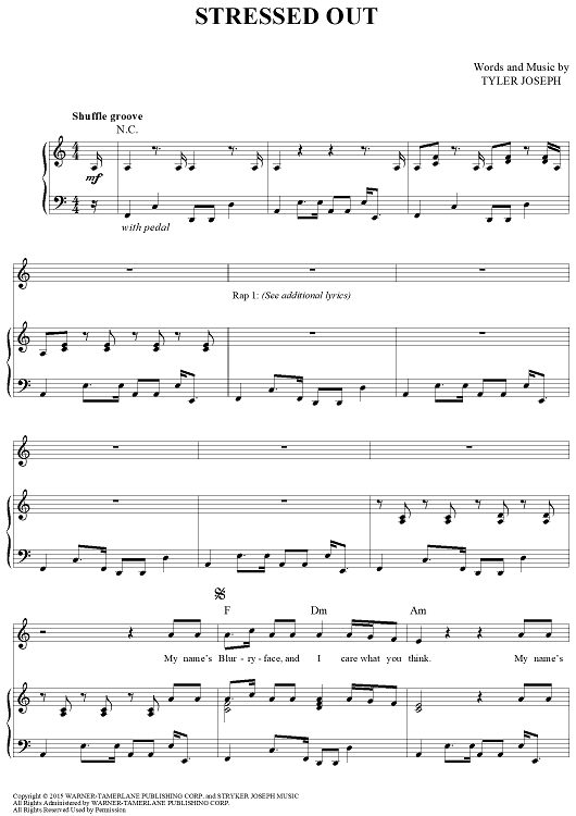 "Stressed Out" Sheet Music by Twenty One Pilots