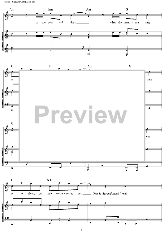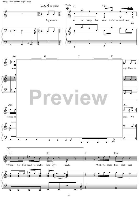 Digital Sheet Music for Stressed Out by Tyler Joseph, Twenty One Pilots scored for Piano/Vocal/Chords; id:456950