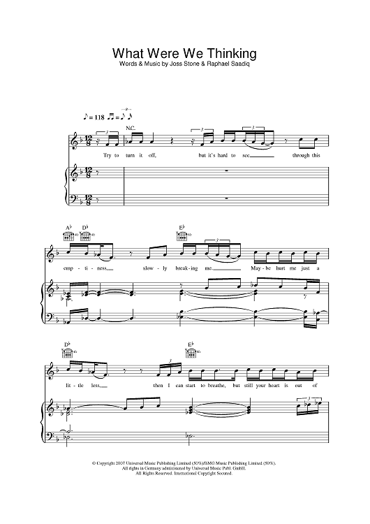 Digital Sheet Music for What Were We Thinking by Raphael Saadiq, Joss Stone scored for Piano/Vocal/Chords; id:397131