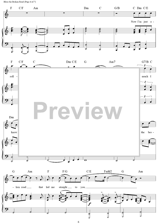 Digital Sheet Music for Bless the Broken Road by Bobby Boyd, Marcus Hummon, Rascal Flatts, Jeff Hanna scored for Piano/Vocal/Chords; id:321071