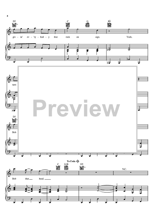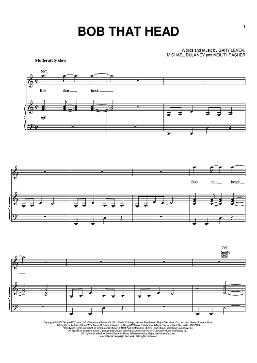 Digital Sheet Music for Bob That Head by Michael Dulaney, Neil Thrasher, Rascal Flatts, Gary Levox scored for Piano/Vocal/Chords; id:402756
