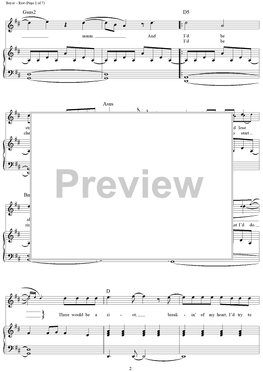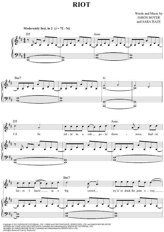 Digital Sheet Music for Riot by Rascal Flatts, Jaron Boyer, Sara Haze scored for Piano/Vocal/Chords; id:450619