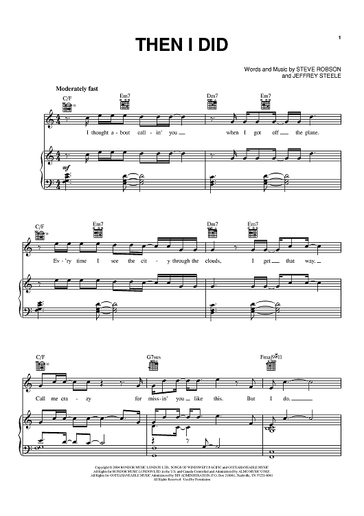 Digital Sheet Music for Then I Did by Jeffrey Steele, Rascal Flatts, Steve Robson scored for Piano/Vocal/Chords; id:390676