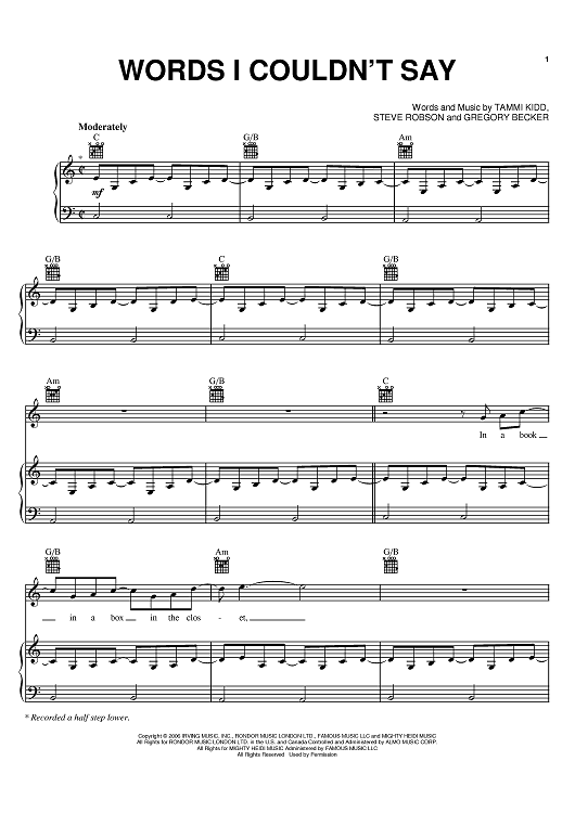 Digital Sheet Music for Words I Couldn't Say by Rascal Flatts, Steve Robson, Greg Becker, Tammi Kidd scored for Piano/Vocal/Chords; id:392803