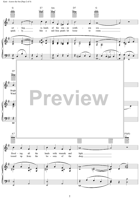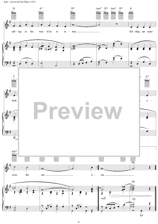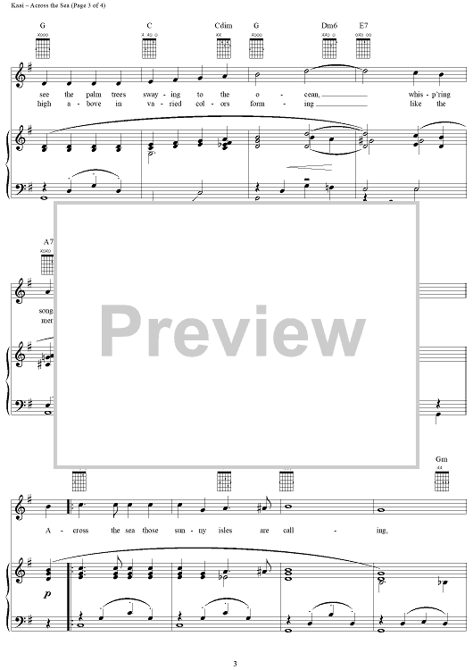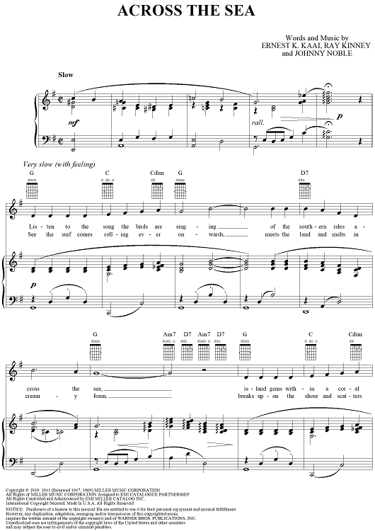 Digital Sheet Music for Across the Sea by Johnny Noble, Ernest K Kaai, Ray Kinney scored for Piano/Vocal/Chords; id:249630