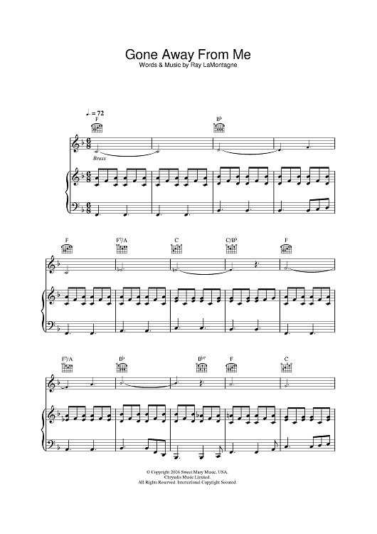Digital Sheet Music for Gone Away From Me by Ray LaMontagne scored for Piano/Vocal/Chords; id:397064