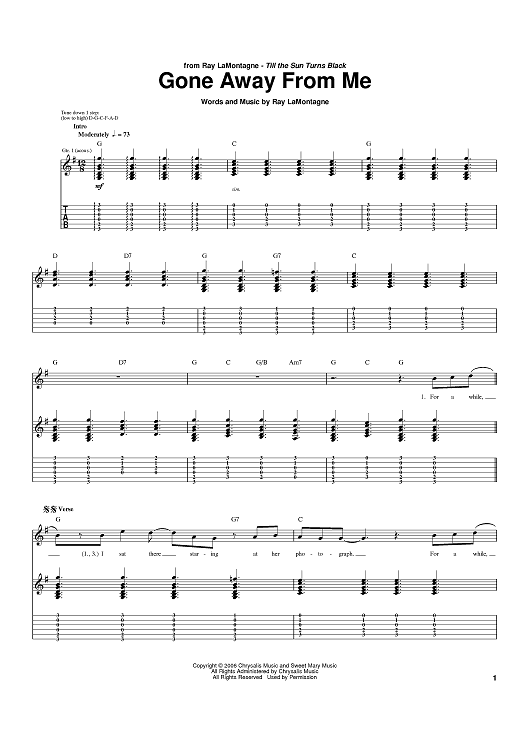 Digital Sheet Music for Gone Away From Me by Ray LaMontagne scored for Guitar Tab; id:397225
