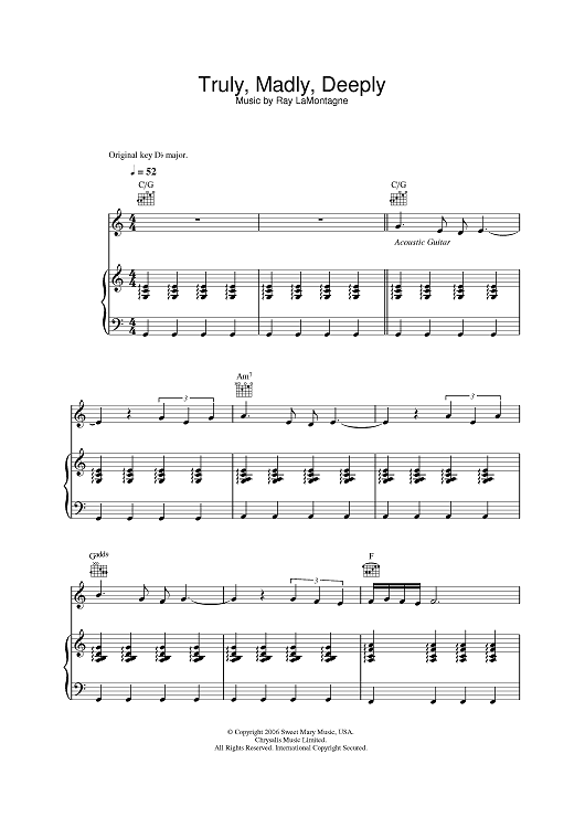 "Truly, Madly, Deeply" Sheet Music by Ray LaMontagne