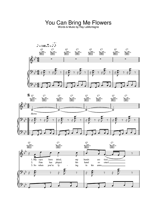 Digital Sheet Music for You Can Bring Me Flowers by Ray LaMontagne scored for Piano/Vocal/Chords; id:397058