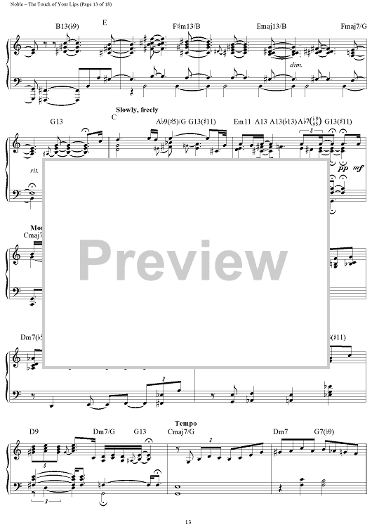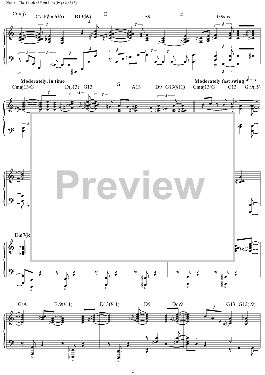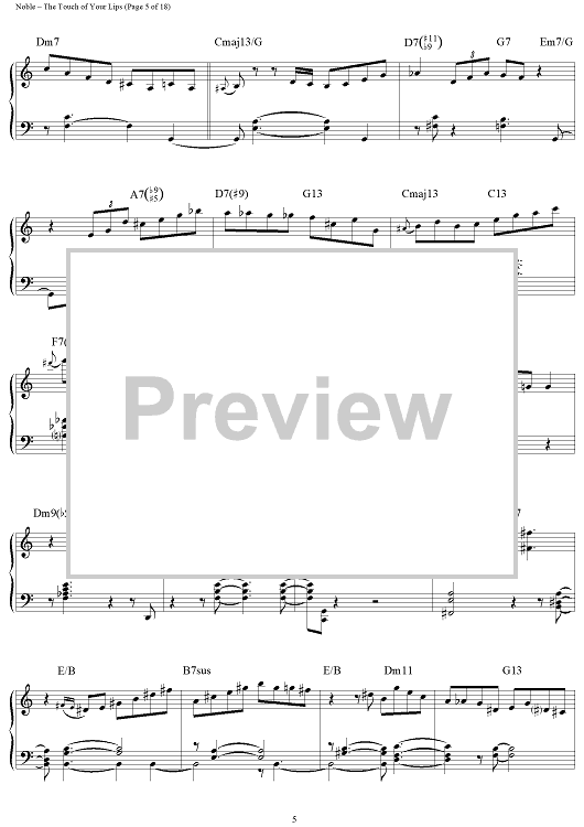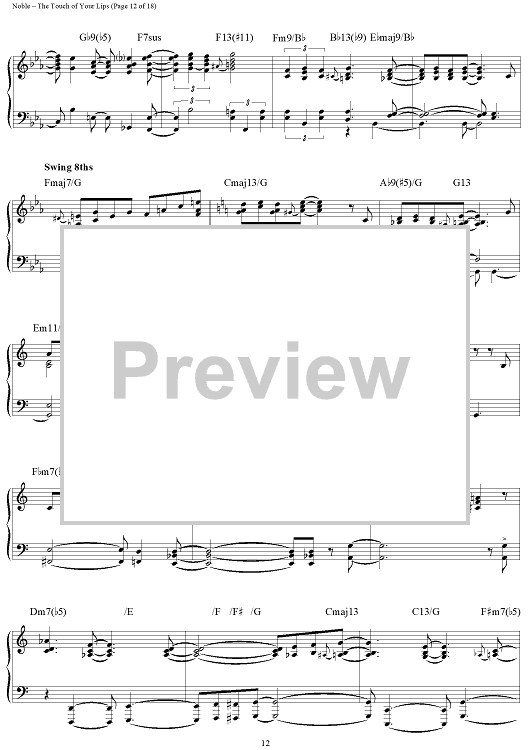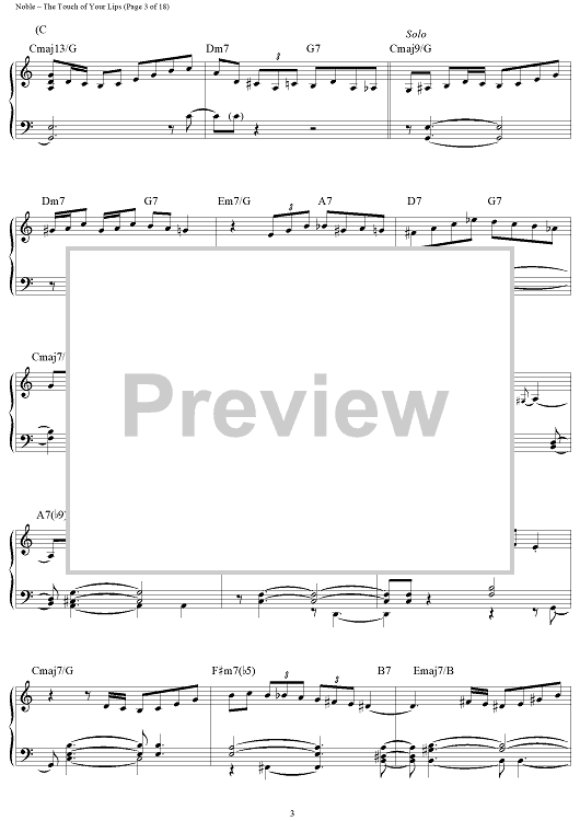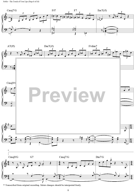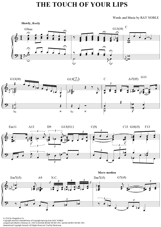 Digital Sheet Music for The Touch of Your Lips by Bill Evans, Ray Noble scored for Piano Solo; id:116400