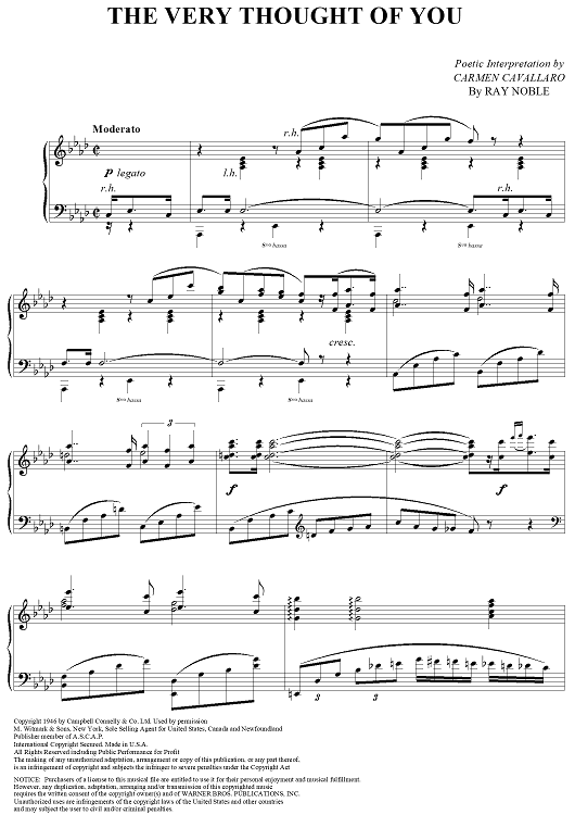 Digital Sheet Music for The Very Thought of You by Ray Noble, Carmen Cavallaro scored for Piano Solo; id:355005