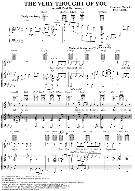 Digital Sheet Music for The Very Thought of You by Paul McCartney, Tony Bennett, Ray Noble scored for Piano/Vocal/Chords; id:359339
