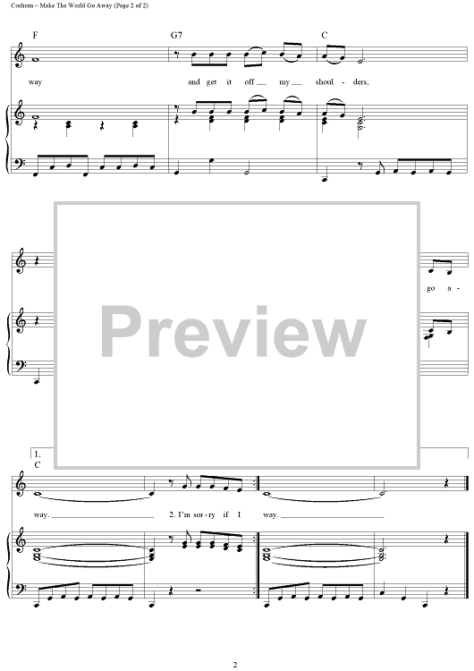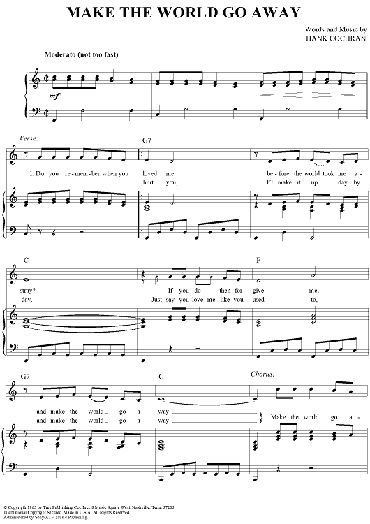 Digital Sheet Music for Make the World Go Away by Eddy Arnold, Ray Price, Hank Cochran scored for Piano/Vocal/Chords; id:360964