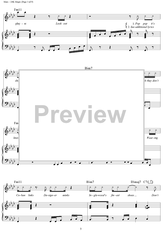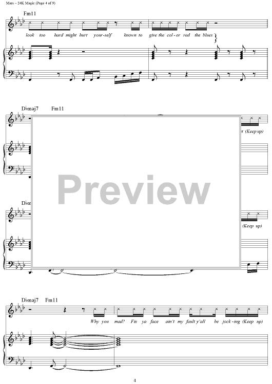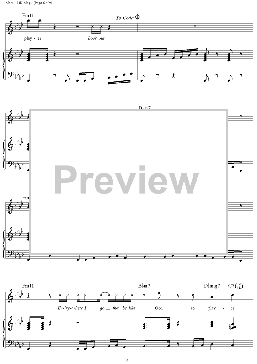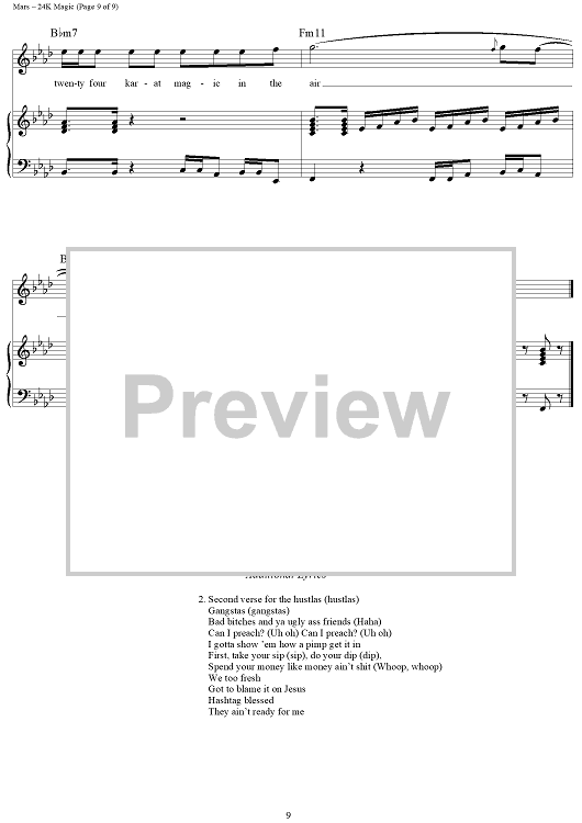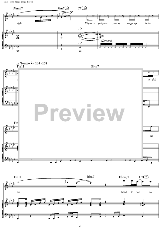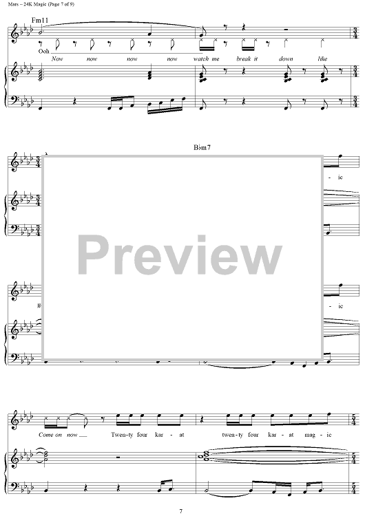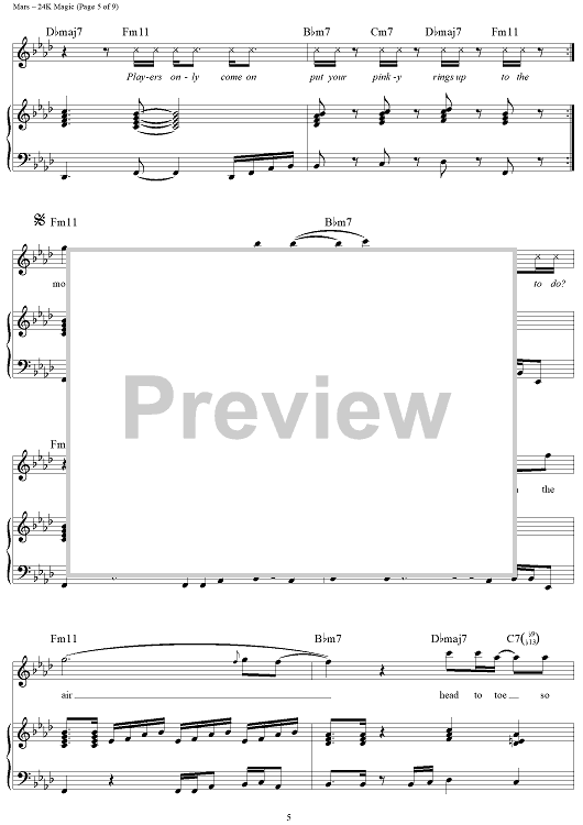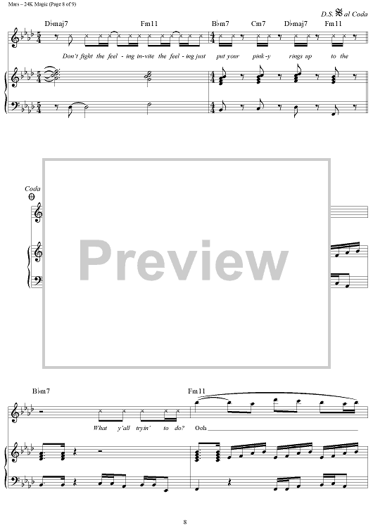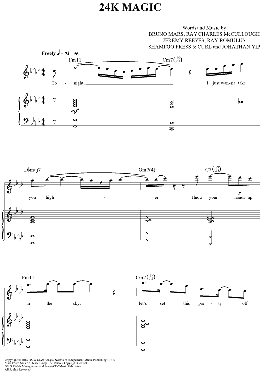 Digital Sheet Music for 24K Magic by Jeremy Reeves, Bruno Mars, Ray Romulus, Jonathan Yip, Charles McCullough, Shampoo Press & Curl scored for Piano/Vocal/Chords; id:462634