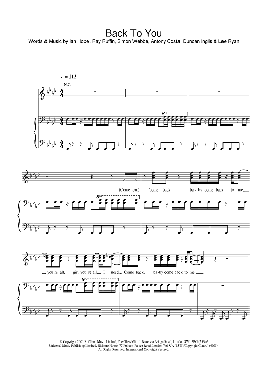 Digital Sheet Music for Back To You by Blue, Ian Hope, Ray Ruffin, Simon Webbe scored for Piano/Vocal/Chords; id:382616
