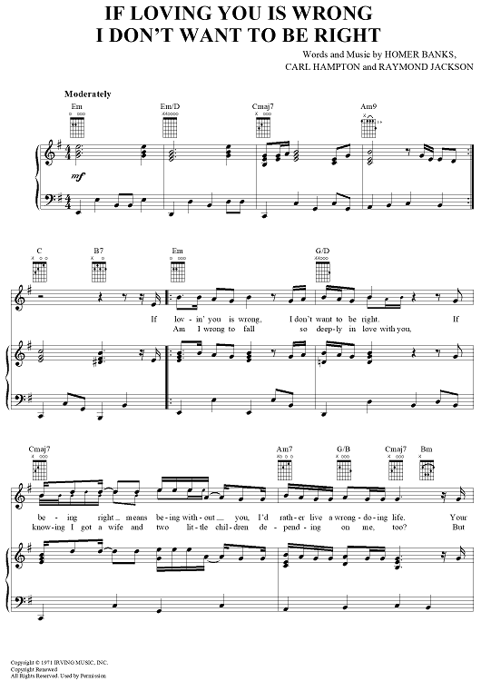 "If Loving You Is Wrong I Don't Want To Be Right" Sheet Music by Luther Ingram