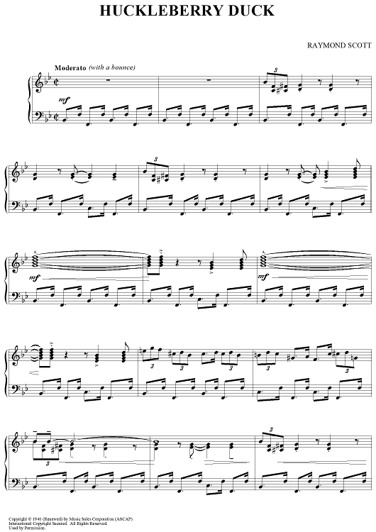 Digital Sheet Music for Huckleberry Duck by Raymond Scott scored for Piano Solo; id:430185