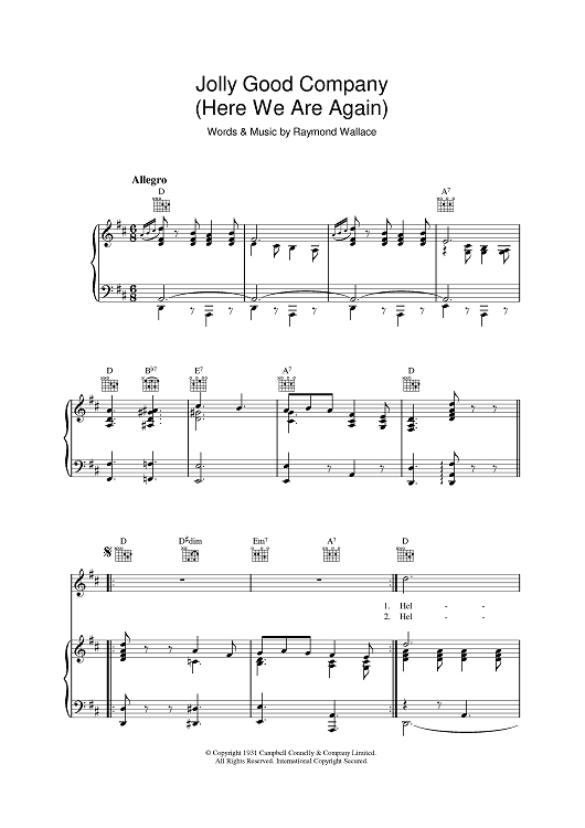 Digital Sheet Music for Jolly Good Company by Raymond Wallace scored for Piano/Vocal/Chords; id:394465
