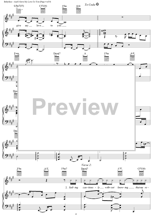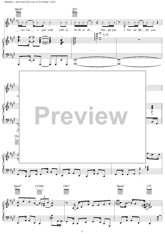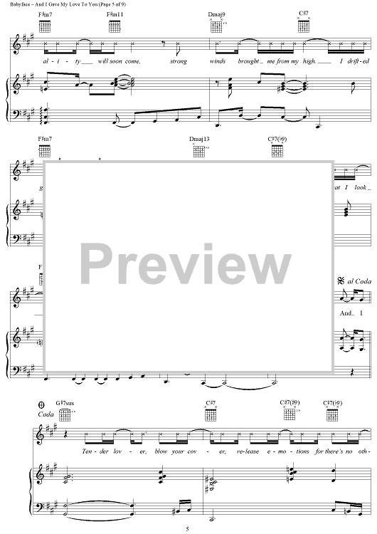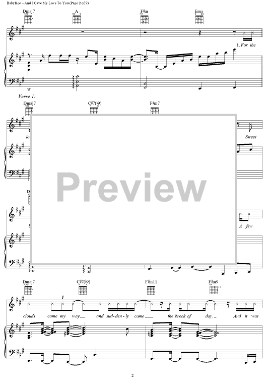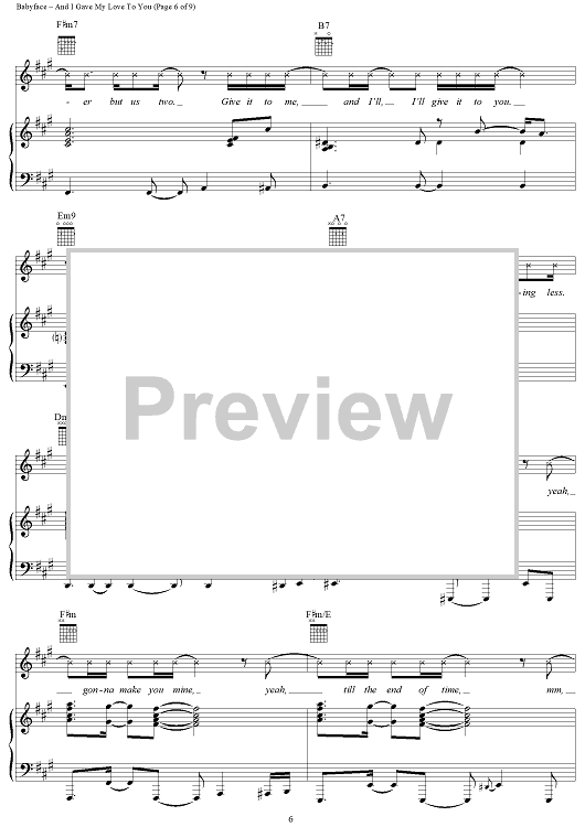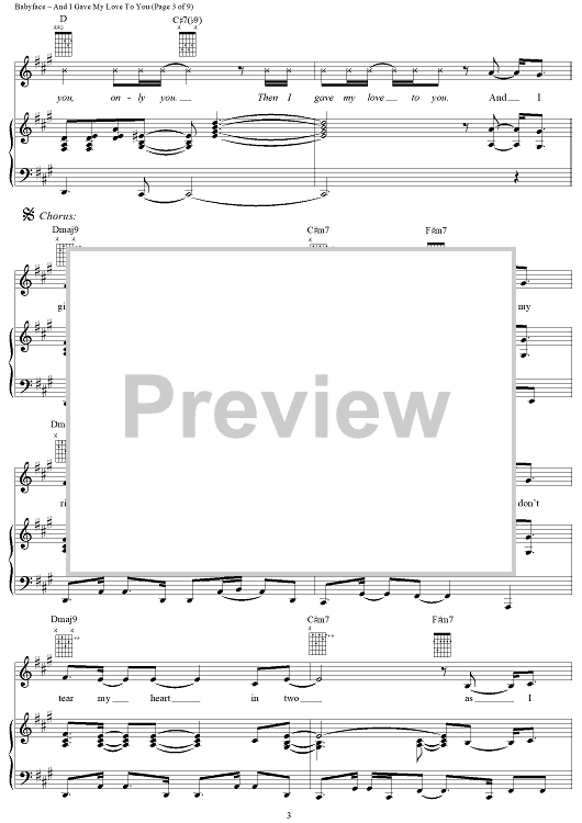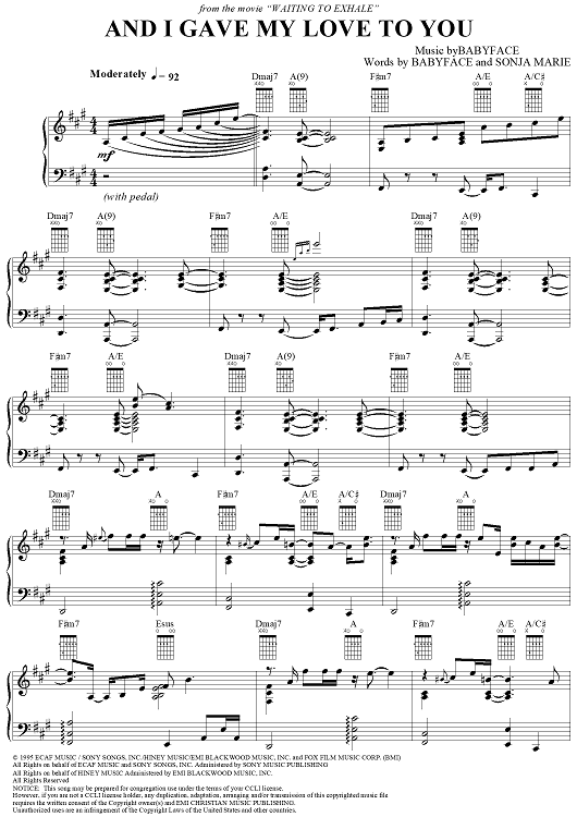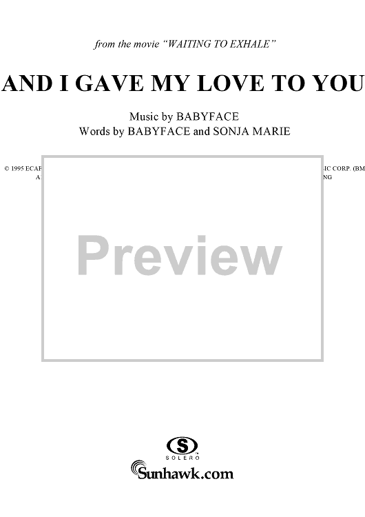 Digital Sheet Music for And I Gave My Love to You by Sonja Marie, Babyface scored for Piano/Vocal/Chords; id:114207