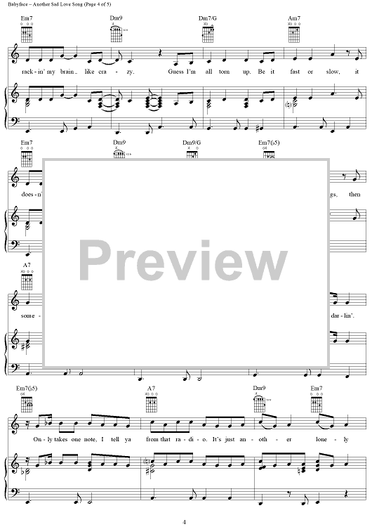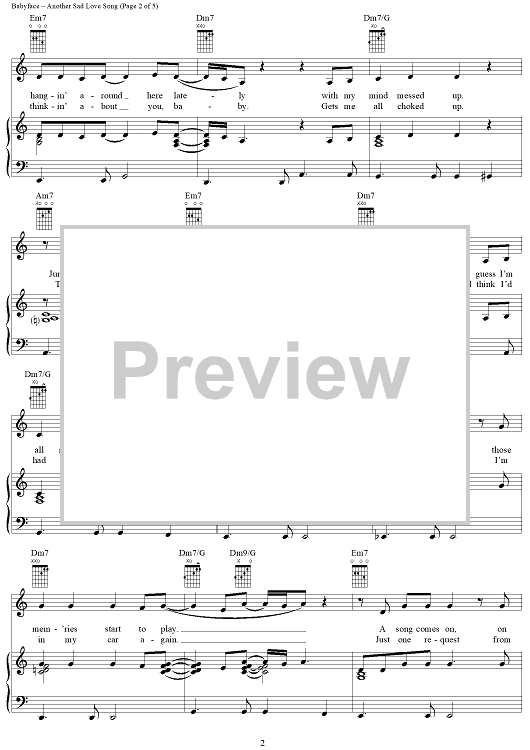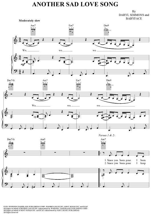 Digital Sheet Music for Another Sad Love Song by Toni Braxton, Daryl Simmons, Babyface scored for Piano/Vocal/Chords; id:241390