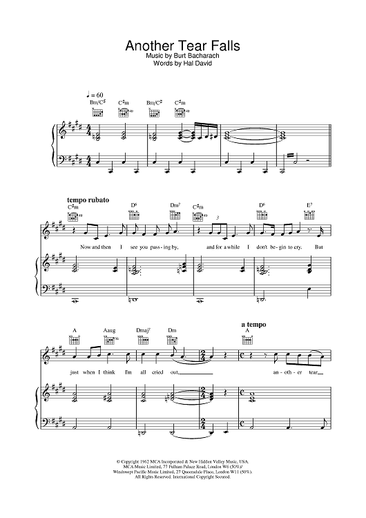 Digital Sheet Music for Another Tear Falls by Scott Walker scored for Piano/Vocal/Chords; id:376432