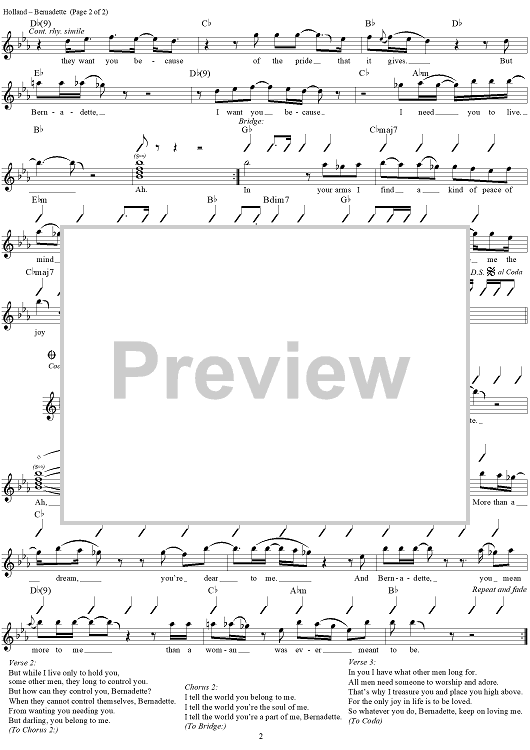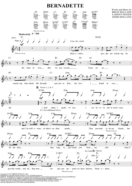 Digital Sheet Music for Bernadette by Four Tops, Lamont Dozier, Kenn Chipkin, Brian Holland, Eddie Holland scored for Guitar Tab/Vocal; id:266509