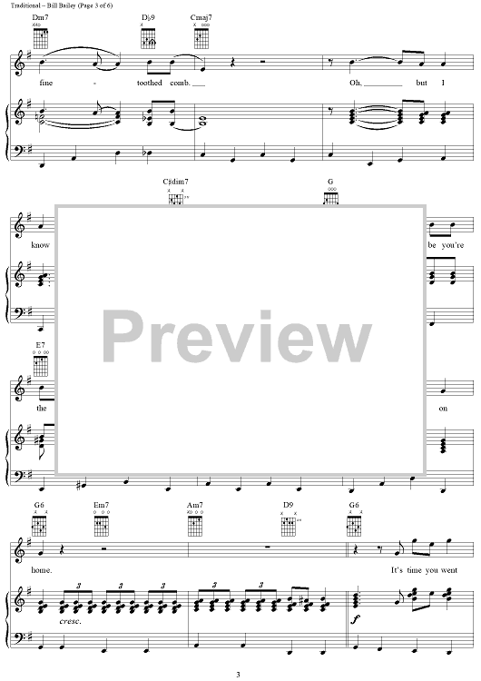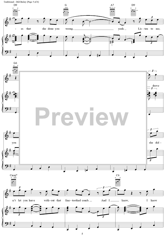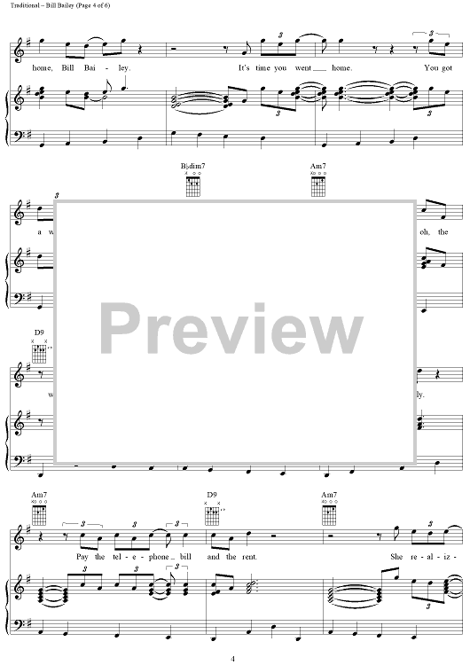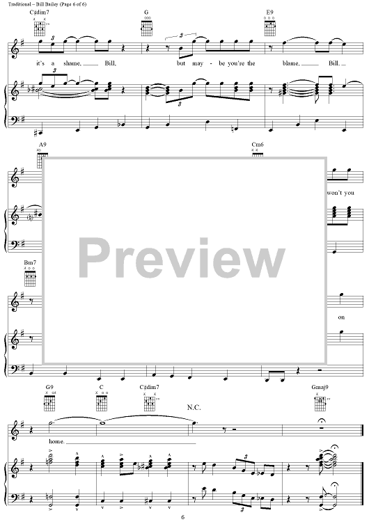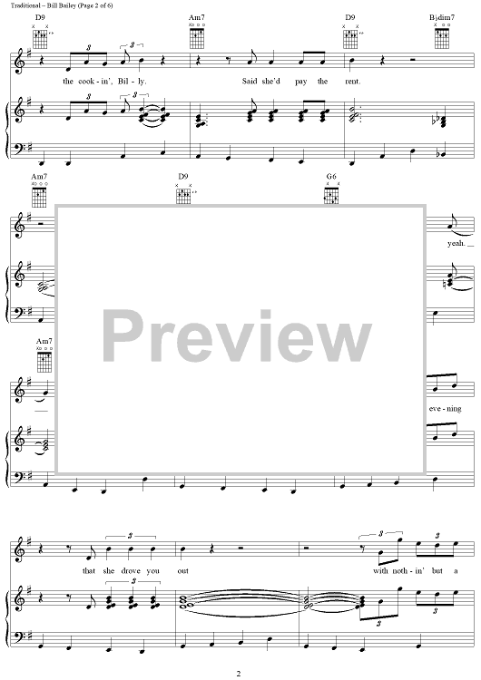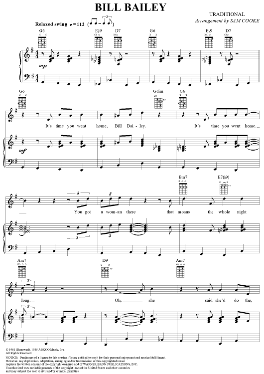 Digital Sheet Music for Bill Bailey by Sam Cooke, Traditional scored for Piano/Vocal/Chords; id:304386