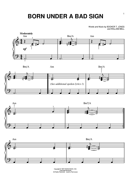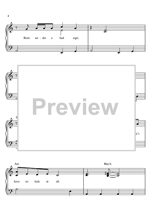 Digital Sheet Music for Born Under A Bad Sign by Booker T. Jones, Cream, William Bell, Albert King scored for Easy Piano; id:383181