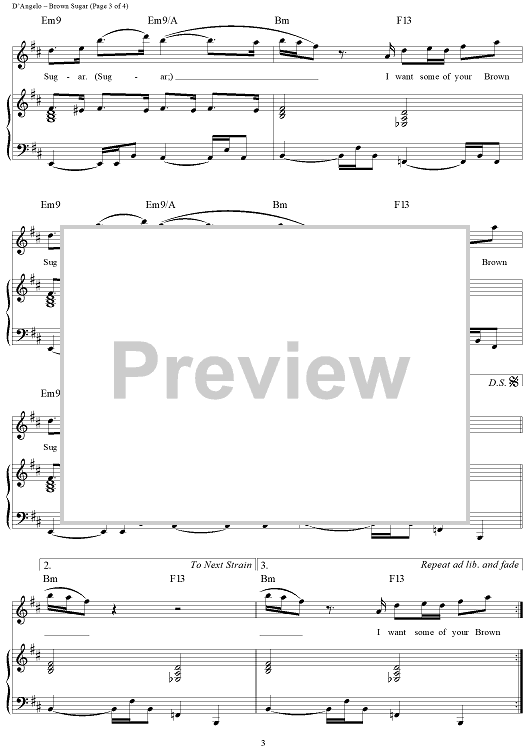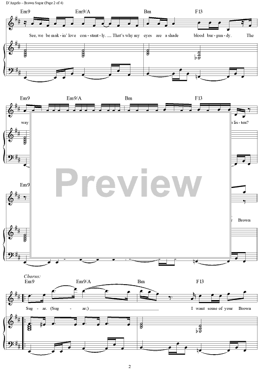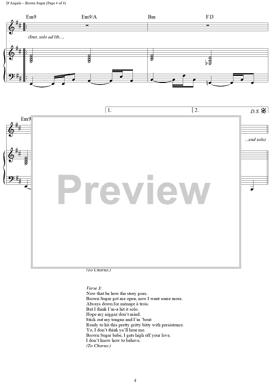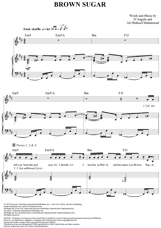 Digital Sheet Music for Brown Sugar by D'Angelo, Ali Shaheed Muhammad scored for Piano/Vocal/Chords; id:361985