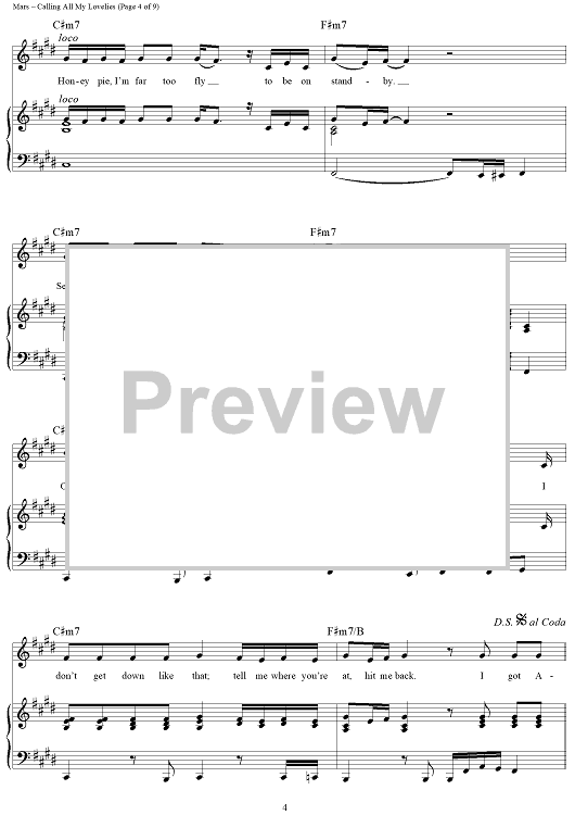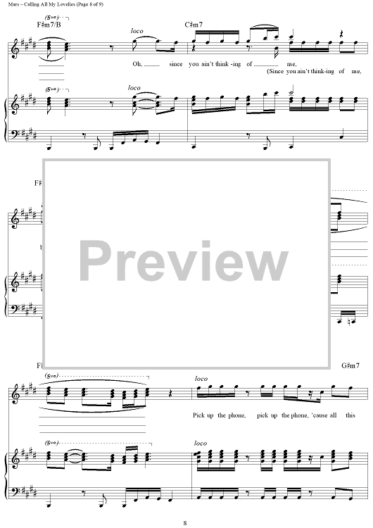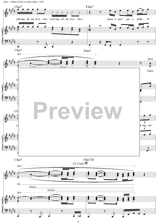 "Calling All My Lovelies" Sheet Music by Bruno Mars