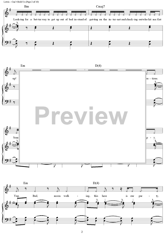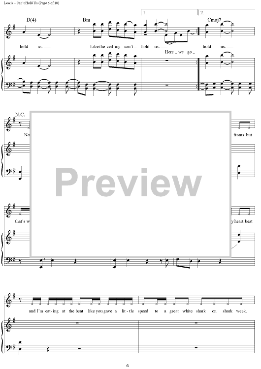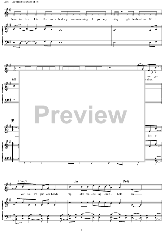 Digital Sheet Music for Can't Hold Us by Ryan Lewis, Ben Haggerty, Macklemore scored for Piano/Vocal/Chords; id:437291
