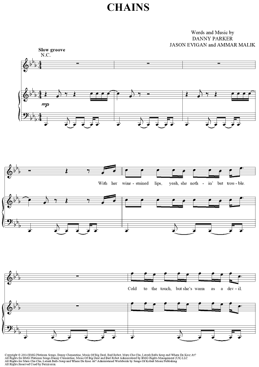 Digital Sheet Music for Chains by Jason Evigan, Ammar Malik, Nick Jonas, Danny Parker scored for Piano/Vocal/Chords; id:449293