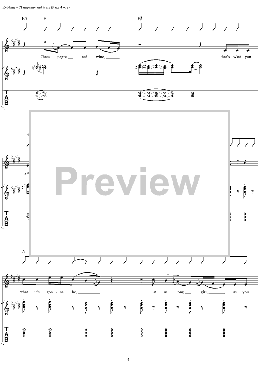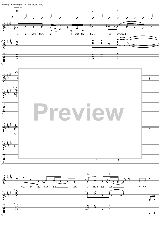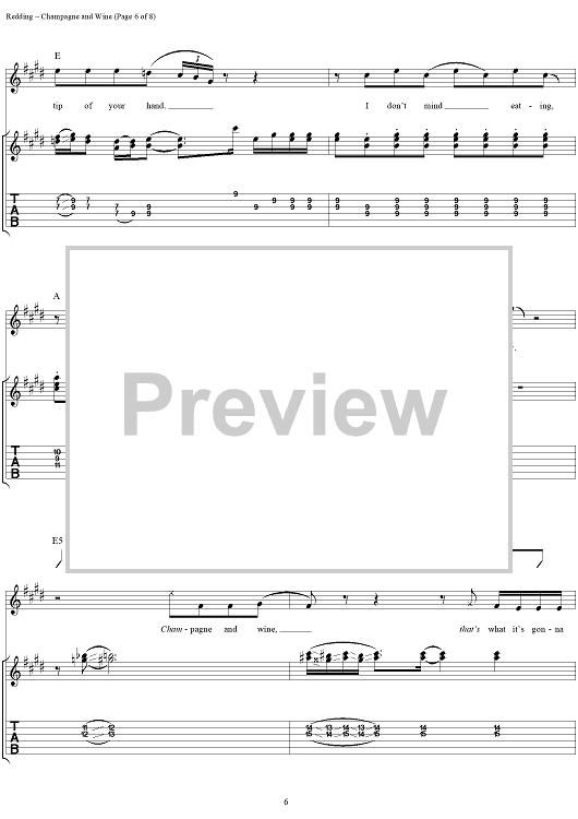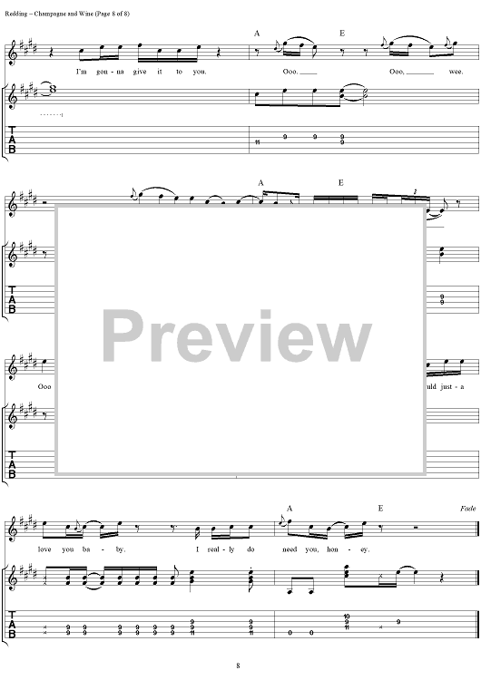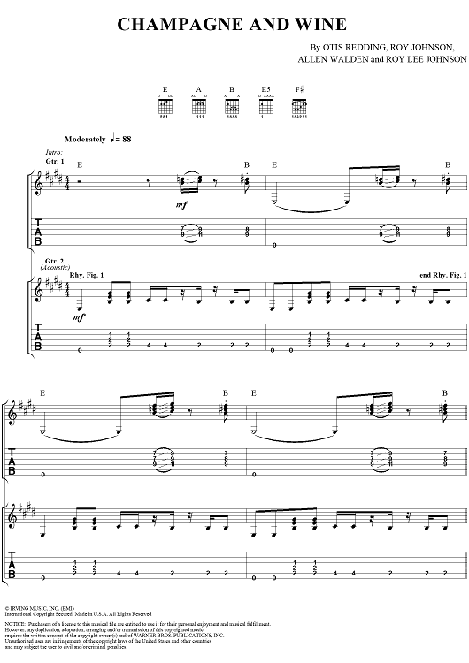 Digital Sheet Music for Champagne and Wine by Otis Redding, Roy Lee Johnson, Roy Johnson, Allen Walden scored for Guitar Tab/Vocal; id:255519