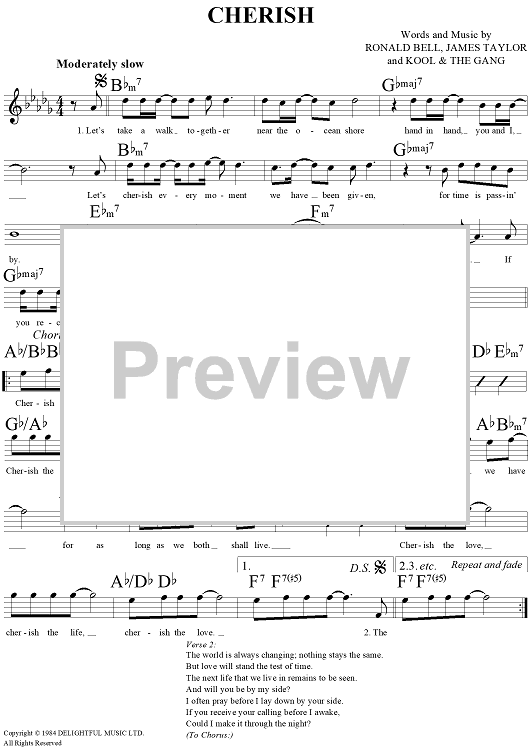 Digital Sheet Music for Cherish by Ronald Bell, J.T. Taylor, Kool & The Gang scored for Lead Sheet; id:259641