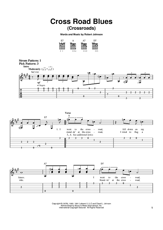 "Cross Road Blues (Crossroads)" Sheet Music by Eric Clapton