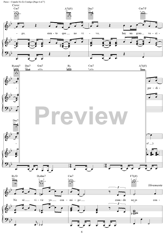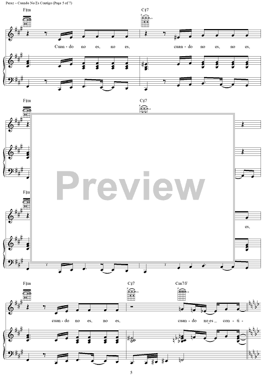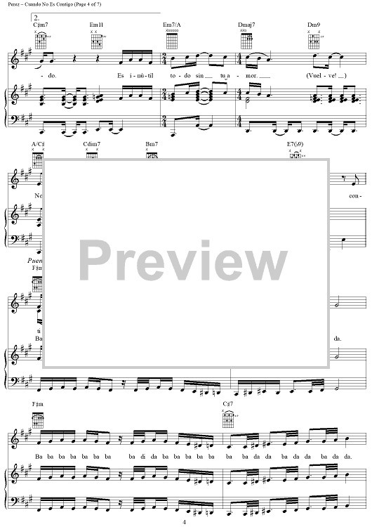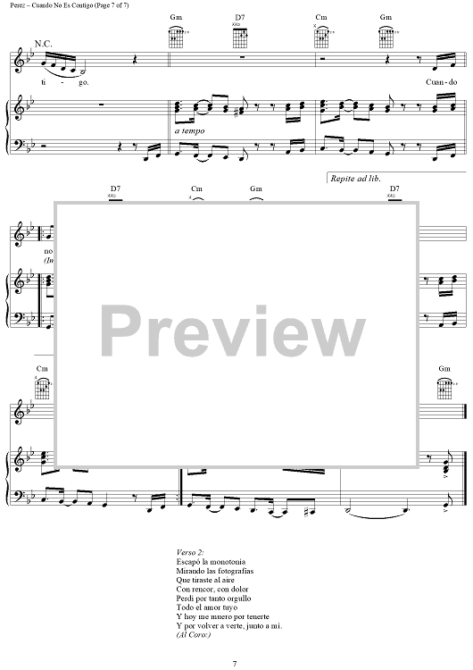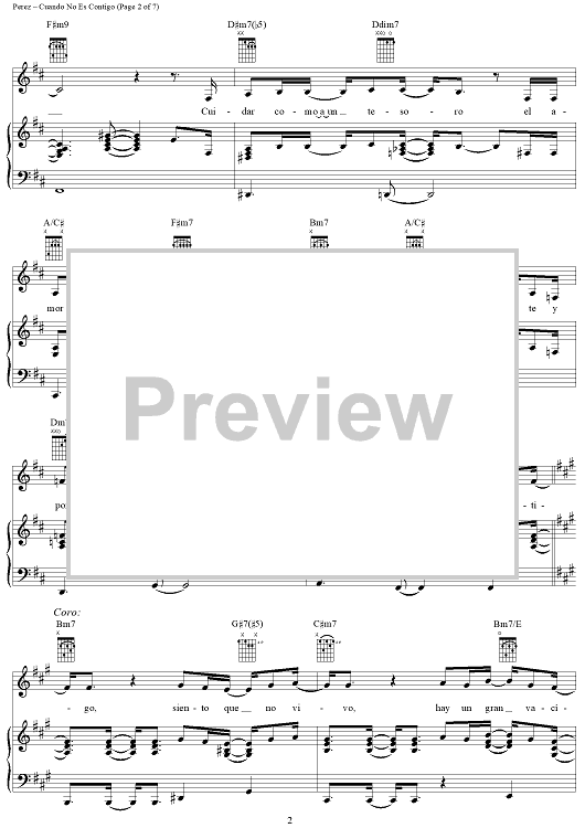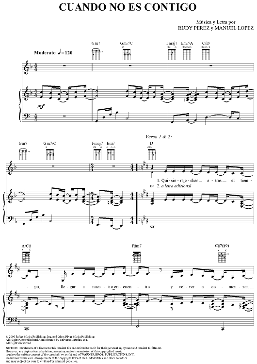 Digital Sheet Music for Cuando No Es Contigo by Rudy Perez, Manuel Lopez, Christina Aguilera scored for Piano/Vocal/Chords; id:285468