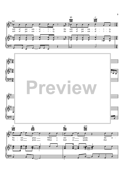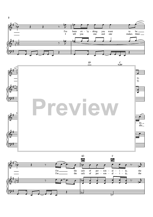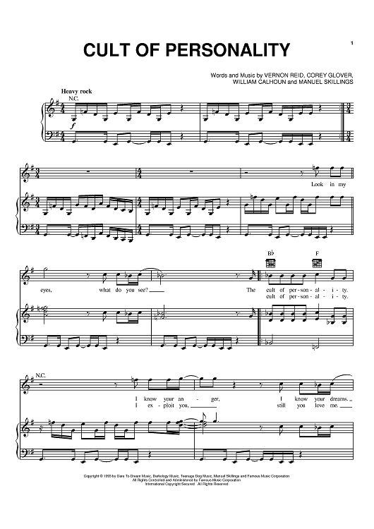 Digital Sheet Music for Cult Of Personality by Vernon Reid, Corey Glover, Living Colour, Manuel Skillings scored for Piano/Vocal/Chords; id:368508